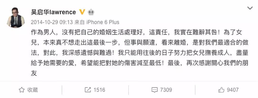 果不其然,这段差异巨大的婚姻持续了五年还是宣告了终结,但吴启华仍旧是好好先生做派,两人见面还是可以心平气和想老友一般吃饭谈心,这点不佩服是真不行。