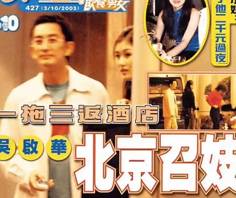 但是好巧不巧,吴启华来内地拍戏的功夫,晚上就被人拍到和三位嫩模勾肩搭背一起进了酒店,当时的新闻写的铺天盖地,标题一水儿的“吴启华召妓”。