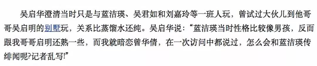 但是后来吴启华直接否认了这段传闻,称自己当时没有和蓝洁瑛相恋,自己只是偶尔带着蓝洁瑛,刘嘉玲一起去哥哥吴启明的别墅聚会而已。