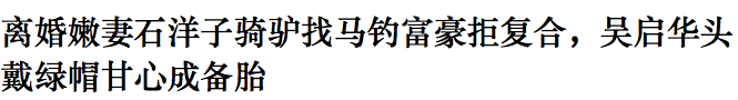 吴启华离婚后做到这个地步,外人多少能看出来吴启华对这段婚姻的挽留与后悔,但是在石洋子这就好像石子扔进了大海,一点波澜都不起。