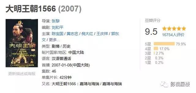 《大明王朝1566》豆瓣评分9.5,国产剧中排第二。