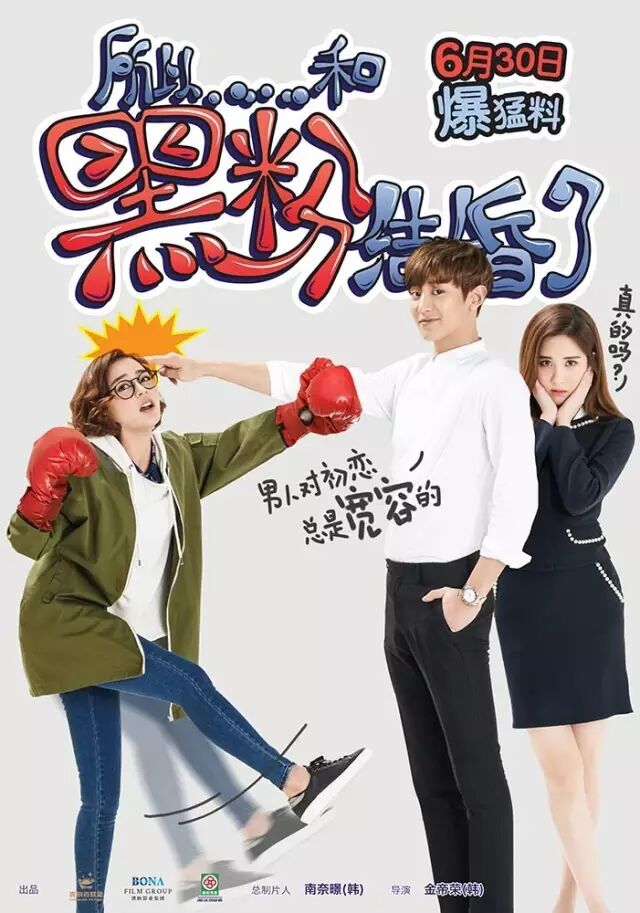 由喜剧者联盟影业、博纳影业、捷成中视精彩联合出品,由EXO成员朴灿烈(Park Chan Yeol)、袁姗姗、姜潮以及韩国“少女时代”成员徐玄主演的爱情喜剧电影《所以……和黑粉结婚了》(以下简称《黑粉》)近日公布“搅局”海报,发布会上朴灿烈(Park Chan Yeol)袁姗姗两人甜蜜互动关系升级,姜潮和徐玄分别以不同的方式强硬介入两人关系之中。