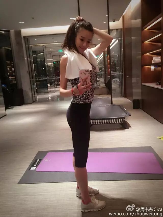 无独有偶,女神周韦彤也经常晒出健身照片,每周都会固定去健身房2~3次锻炼并打卡。