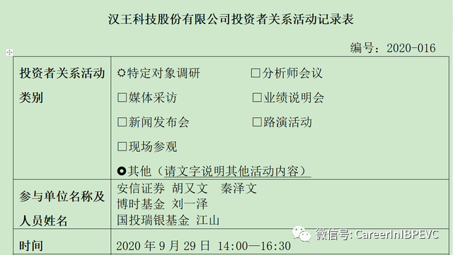 此外,据汉王科技公告显示,2020年9月底,胡又文还曾与秦泽文一起实地调研汉王科技,当时一同调研的还有两家基金公司博时基金、国投瑞银基金。彼时,汉王科技正处于一轮涨势中。