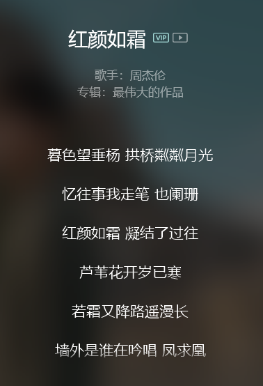 给许嵩写的《纸上雪》和给周杰伦写的《红颜如霜》。