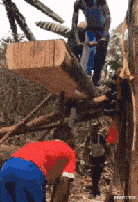 这非洲有些地方就是落后,锯木片还是靠人力据,我们这都是抬上机器就行
