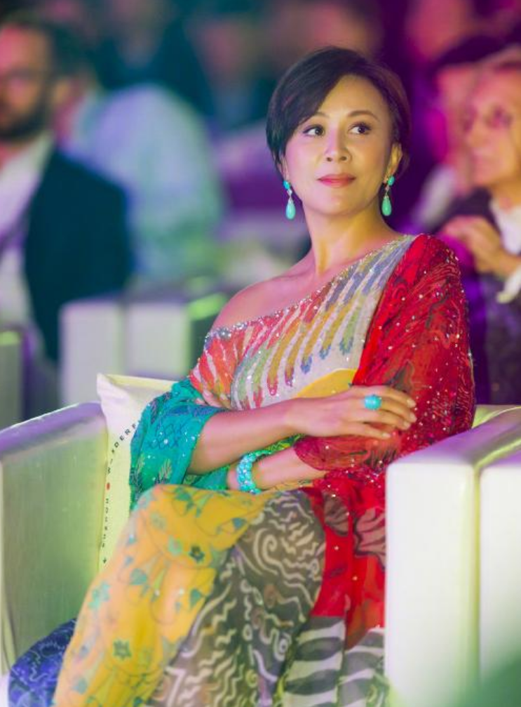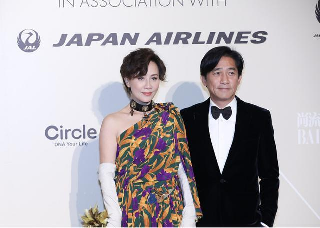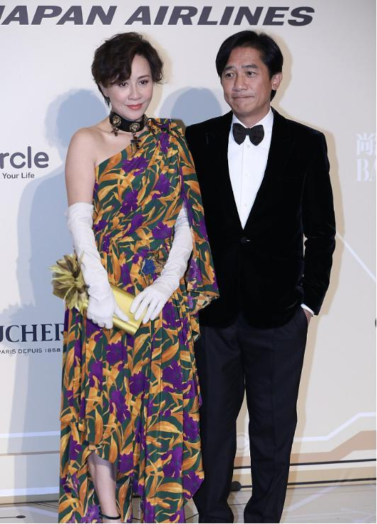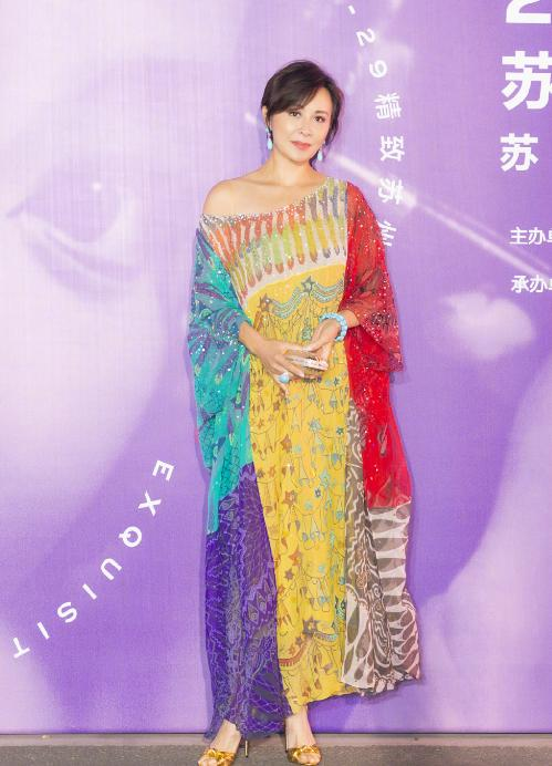 刘嘉玲很爱穿印花,这组造型中大胆尝试紫+黄印花裙,露半个肩膀还戴俩白手套,贵妇气质藏不住。除了本身很有阔太范儿,对款式的选择和搭配的品味,才是她将印花穿出高级感的核心,她的技巧也刚好值得我们借鉴。