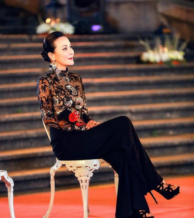 印花不是只有色彩的碰撞,还可以在形态上稍作改变,蕾丝的刺绣花纹或一些暗纹、立体花朵,都是更低调优雅且高级的元素。如果驾驭不好明艳印花,这类元素更值得尝试。刘嘉玲的蕾丝裙,也总能穿出惊艳感。