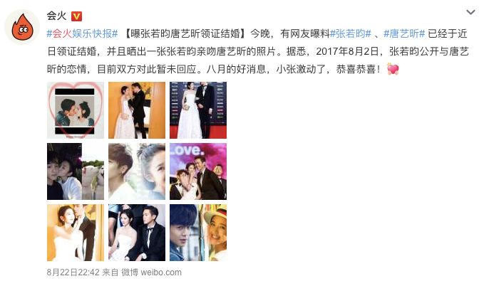 张若昀和唐艺昕这对相爱八年的情侣,被曝领证了。虽然他们本人还没有证实,但对于喜欢低调的他们来说,完全符合他们的作风。
