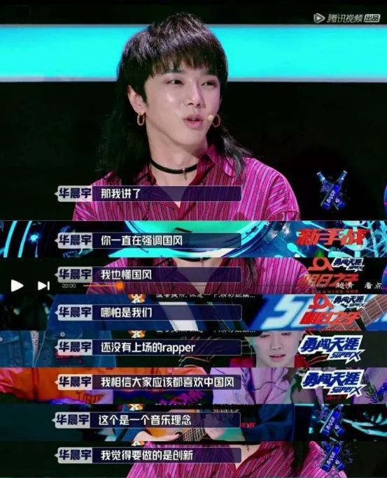 华晨宇说:“你一直在强调国风,我也懂国风,哪怕是我们还没有上场的rapper,我相信大家都喜欢中国风,这个是一个音乐理念,我觉得要做的是创新。”