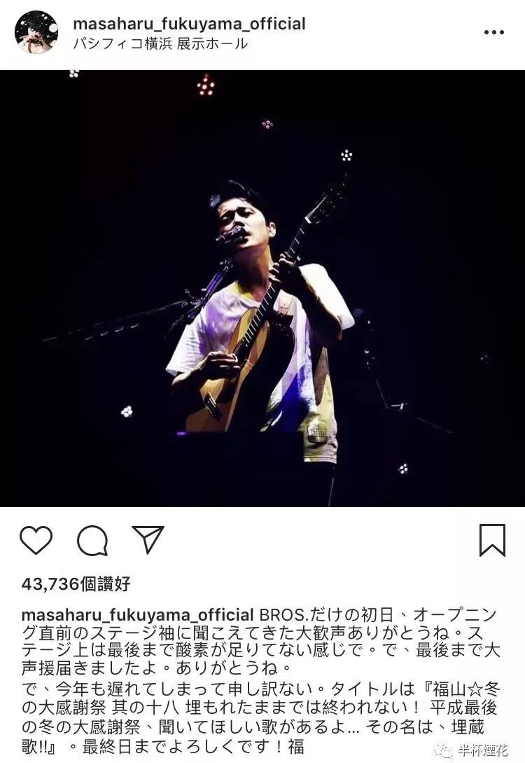 (福山雅治Instagram,2018.12.21)