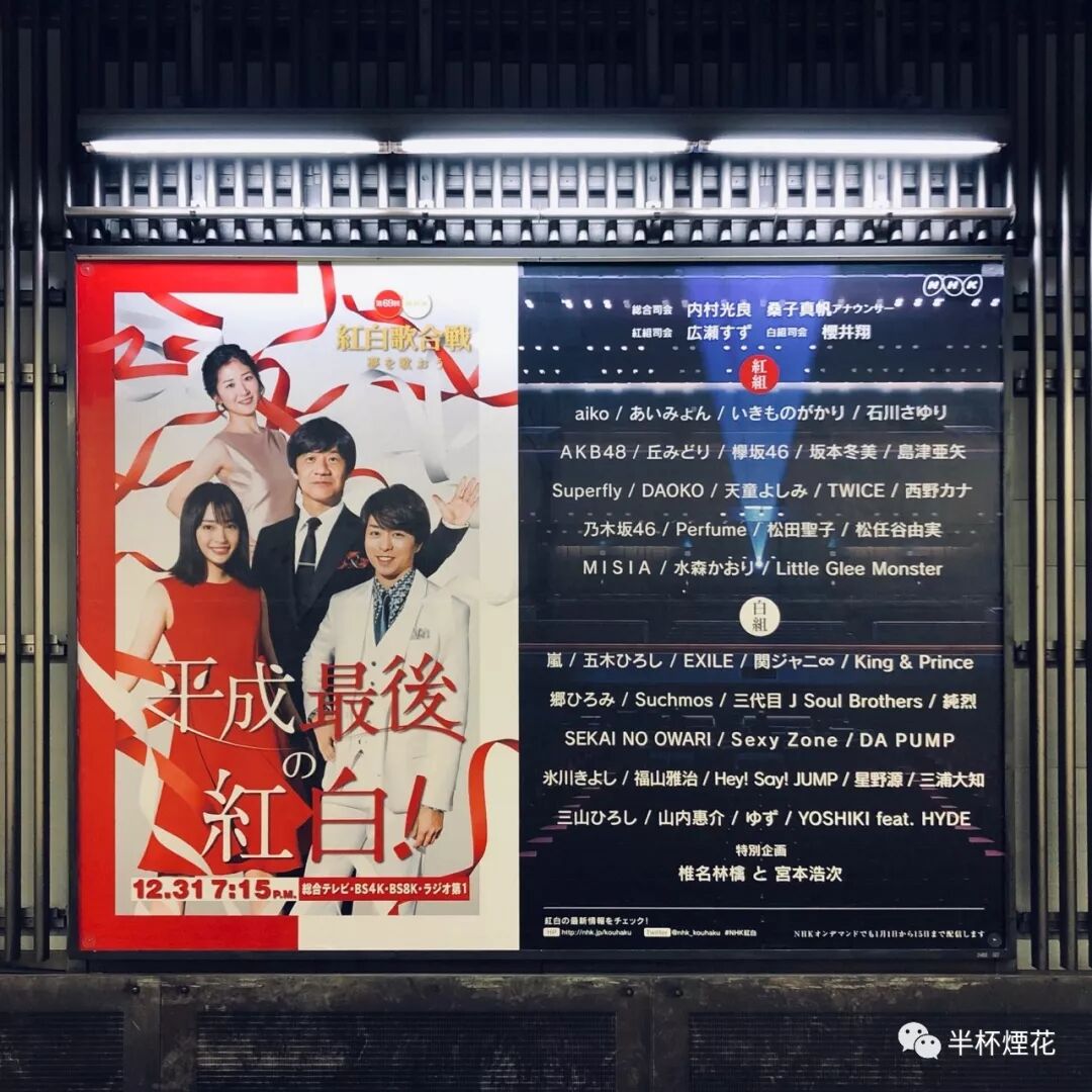 當我再度聽著這首《12月》來到東京與橫濱,滿街滿巷所見所聞最多的,不是約翰福音,而是「平成最後」。「平成最後的聖誕節」、「平成最後的紅白歌會」、「平成最後的大感謝祭」……伴著「平成最後」蔓延開的,是一種詭異違和的「焦慮感」,而這種溢滿街頭巷角的焦慮感一點也不符合日本人慣常的時間觀。是枝裕和在《我在拍電影時思考的事》裡寫過,東方人和西方人對時間流動的感知是截然不同的:西方人的時間觀是線性的,像赫拉克利特所說的「人不可能兩次踏進同一條河流」那樣,而東方人則認為時間是周而復始的,春夏秋冬過去了還會再度回來。(注釋1)所以,像「平成最後」這樣,時刻提醒人們一個時代就要轟然而去的標語,實在太不日式了。