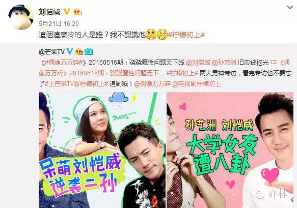 不过人刘恺威的最新一条微博还在转自己上的一档芒果TV综艺,而且上该综艺还是为了《柠檬初上》做宣传,觉得很乱有木有!