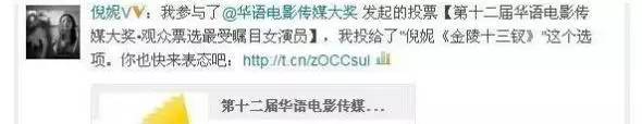 五、倪妮微博给自己投票