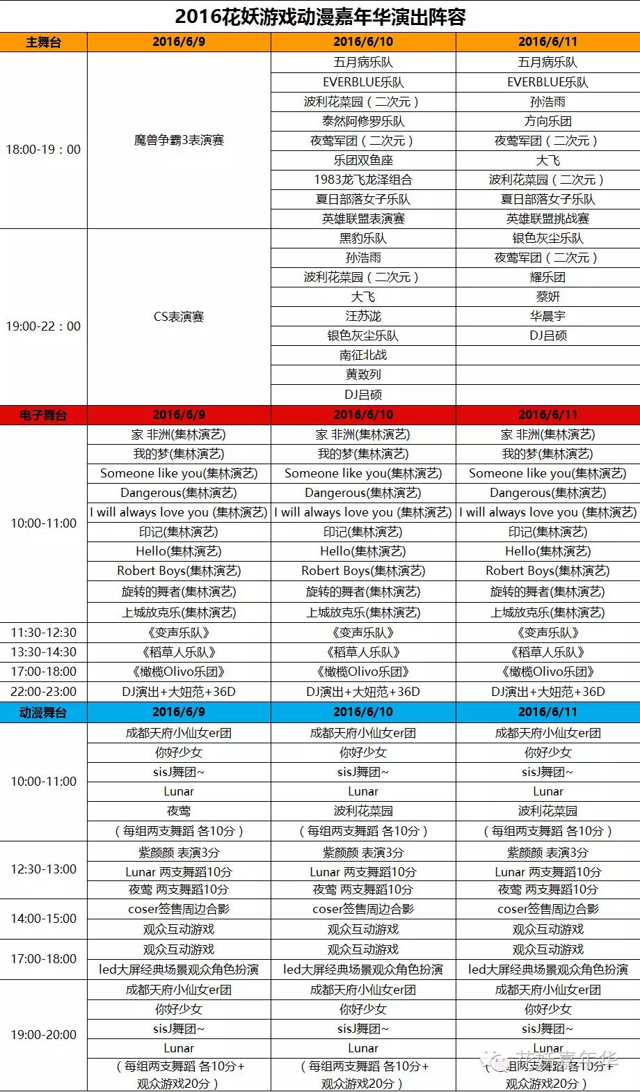 四川特色小吃 2016花妖动漫游戏音乐嘉年华成都站主舞台节目单 时间:2016年6月9日-11日三天