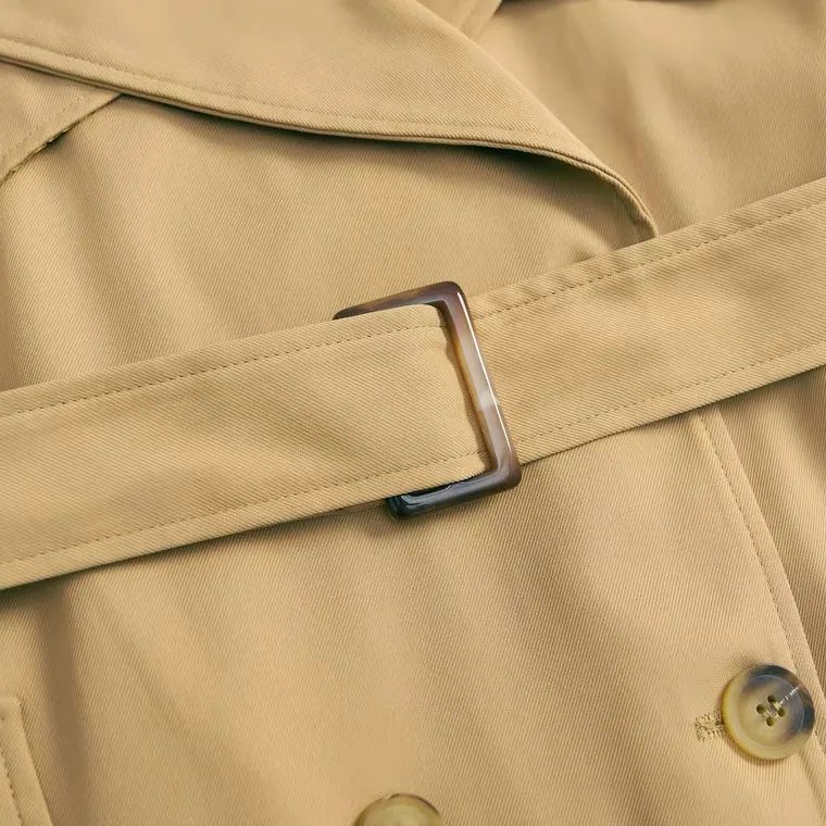 经典风衣常用的定制TR斜纹面料,纹理清晰细腻,肉眼看得到的高端货质感。