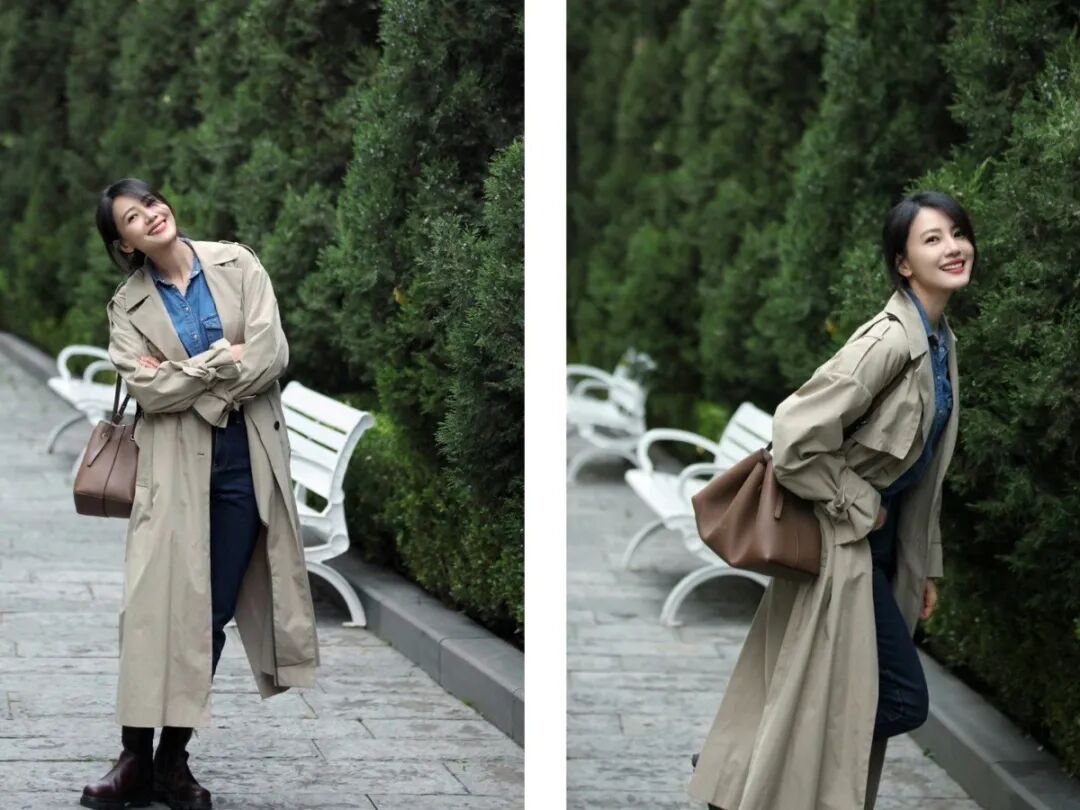 哇,昨天刷到高圆圆一组街拍,又被美到了,风衣+牛仔衬衫,大气又舒展。