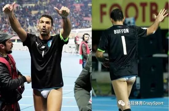 布冯只剩小裤衩,屁股蛋子勒的紧。