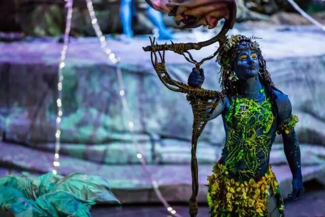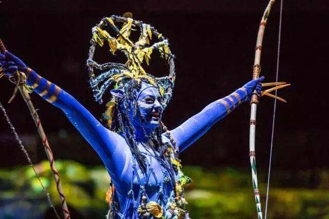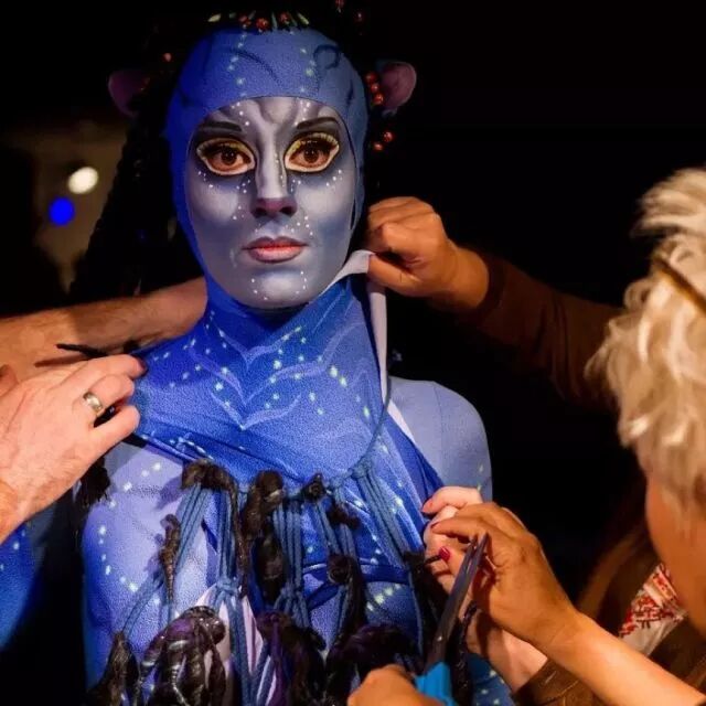 为了让观众产生演员就是真正的纳美人的错觉,化妆变成了非常重要的一个环节。化妆师花费了大量时间去寻找并创造出统一的生物荧光图案,重塑35名舞台表演者的脸,使得服装颜色和面部化妆颜色得以无缝过渡。