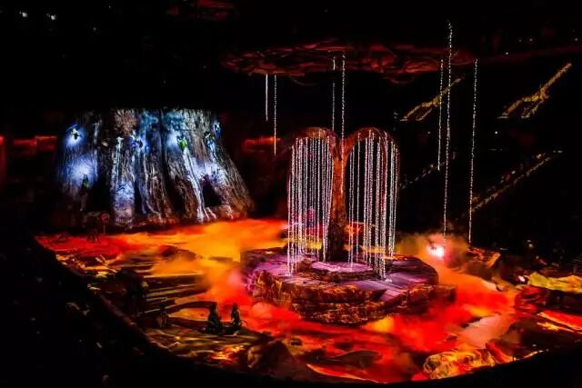 演出的大帐篷为方型,内设超大型舞台,总投影面积达1858平方米,尺寸超过5个IMAX屏幕,实现舞台声光电效果的完美结合,营造出奇幻瑰丽的舞台效果,令人一饱眼福。