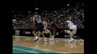 这个出生在贫民区的小伙子,凭借篮球天赋不断实现人生进阶,最终在1999年在选秀大会上被灰熊队选中,不过在2000年他就被交易到了火箭队。在那一年的NAB扣篮大赛上,凭借闪亮的折叠式扣篮技惊四座。