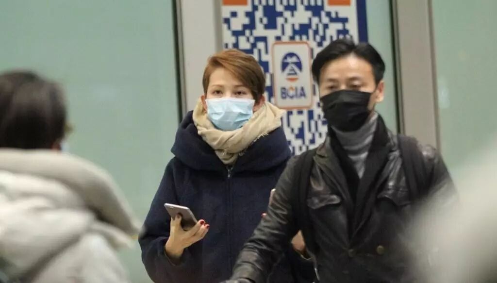 靓靓袁咏仪和张智霖出现在机场一般都是素颜,十足老夫老妻。
