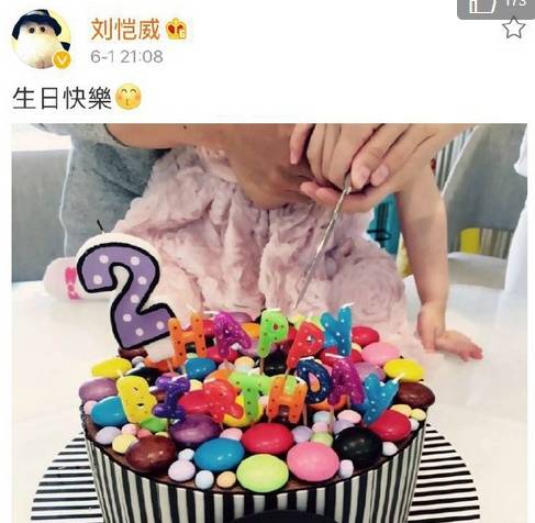 晚上刘叔叔也发了一条微博,是一家三口握着手切蛋糕,很有爱。
