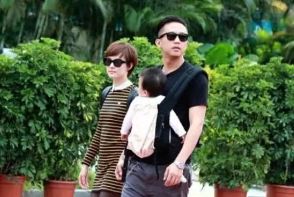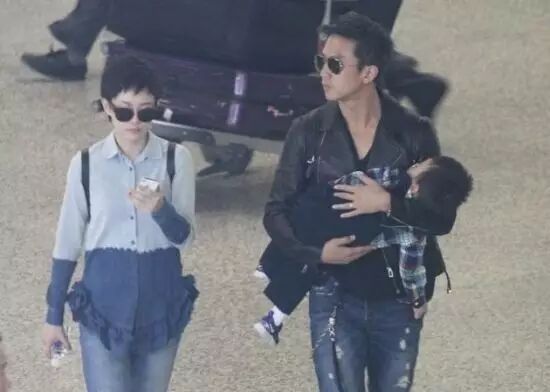 贾乃亮和李小璐出门,一个拿包一个抱孩子,分工明确↓