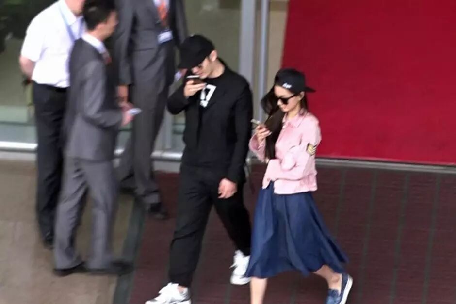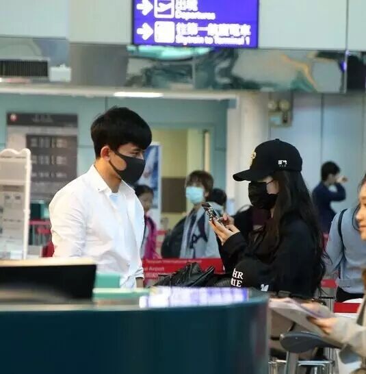 况且他们俩在机场也有这种一前一后冷漠脸的照片↓