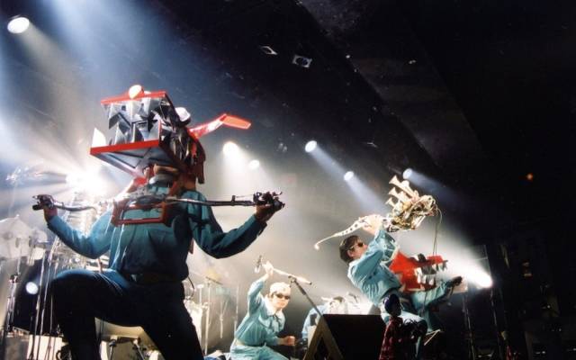 用各种自制机械奇葩乐器表演的明和电机乐队,