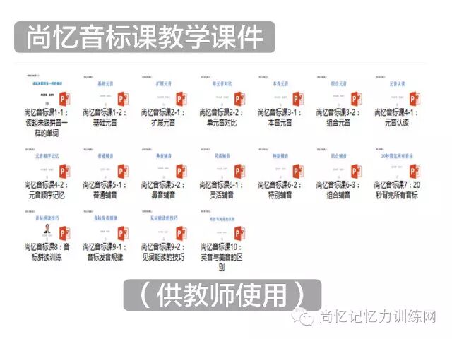 尚忆教育研发了许多系统、有效的高效学习技术,例如“图像记忆四大步骤”、“背课文万能公式”、“关键词学习法”、“五爪金龙单词记忆法”、“尚忆音标记忆表”、“大脑屏幕学习法”、“多元想象技术”等等。