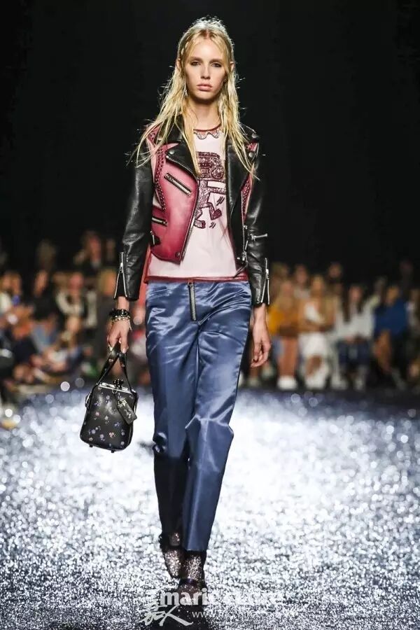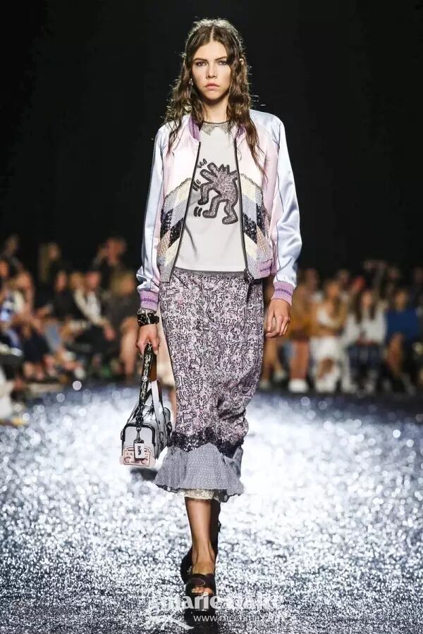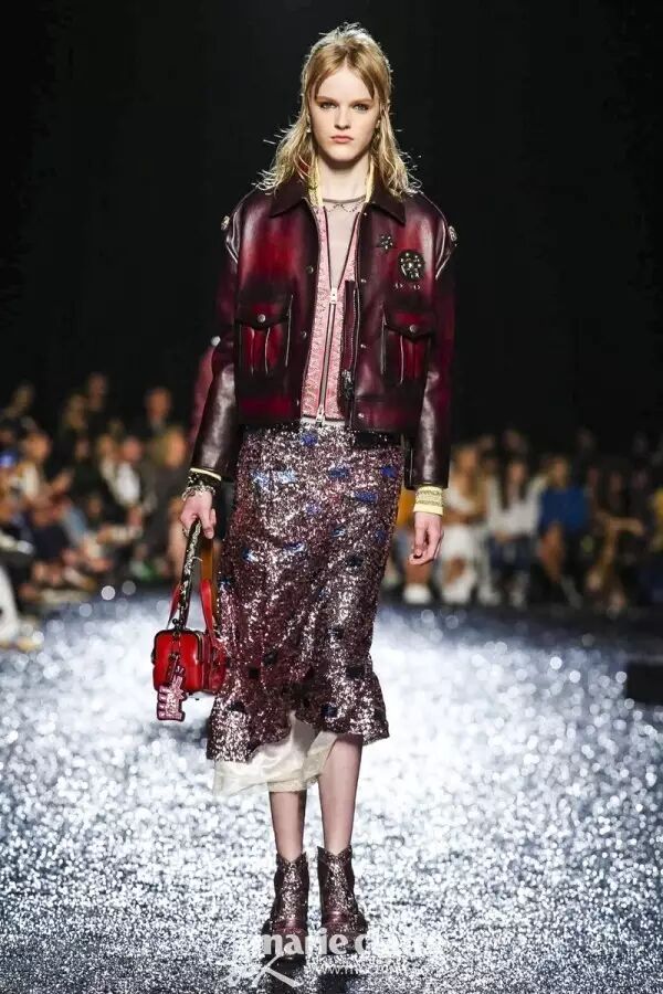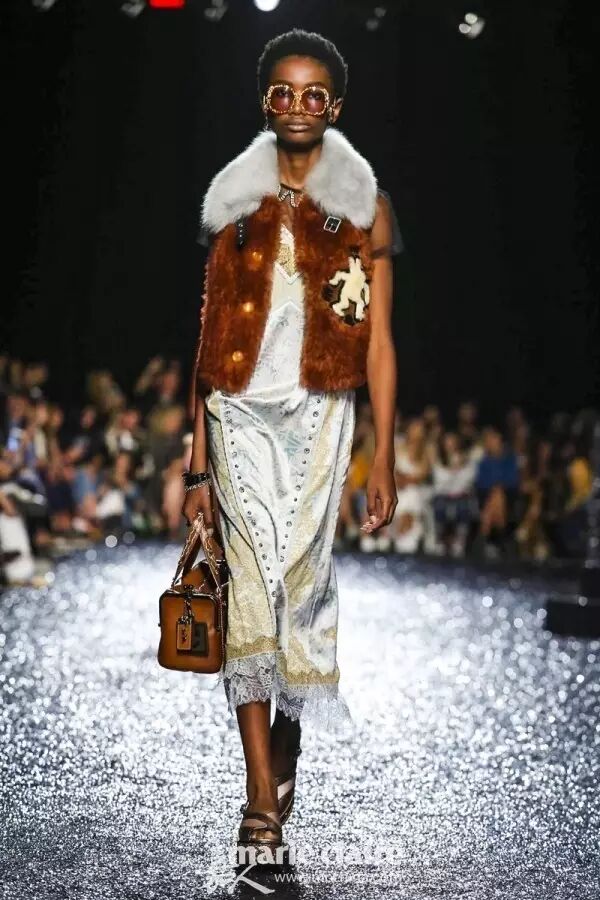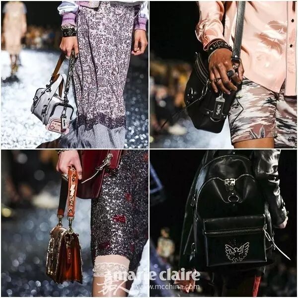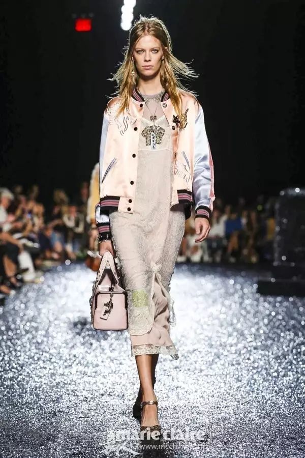 COACH 2018春夏系列是向纽约城市精神致敬的一个献礼,怀旧反叛的青春气息,浪漫情怀的印花吊带裙等单品比以往更具时装感,细节处理上有一些暗黑,摇滚,和粗粝感的中性细节元素,完美诠释了一个追梦女性的外在形象。而Lou Reed地下丝绒乐队主唱给这一季男装带来很多音乐灵感,棒球外套和机车夹克上体现了纽约著名艺术家Keith Haring的经典涂鸦印花,传递出一个富有玩趣的追梦少年的形象。