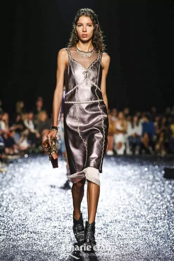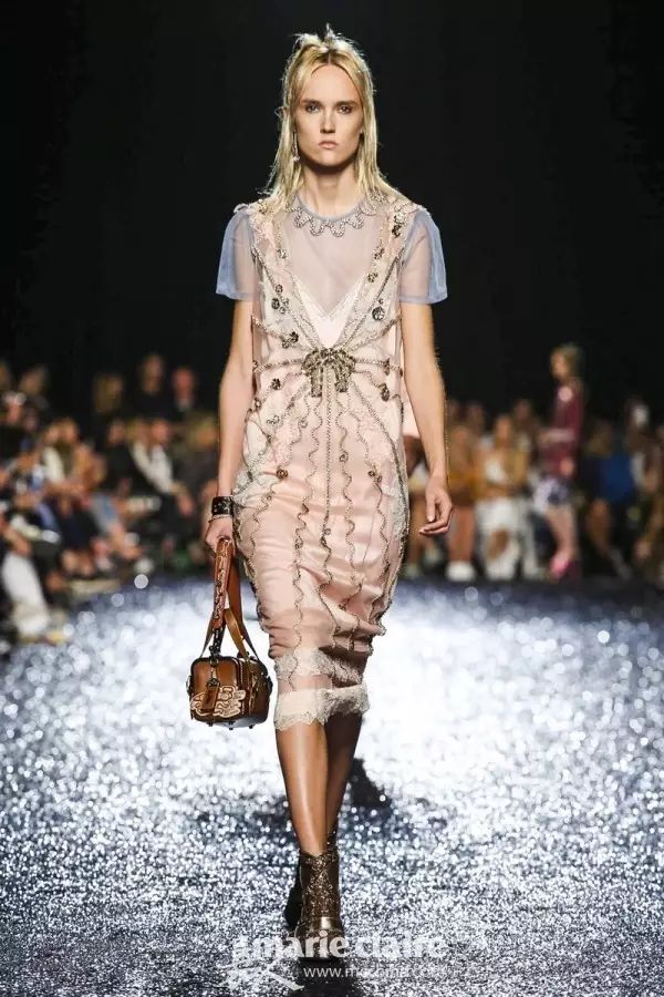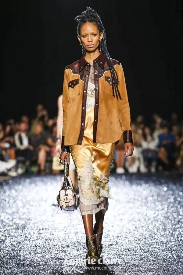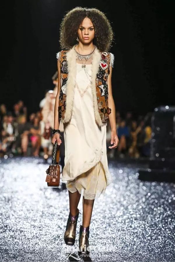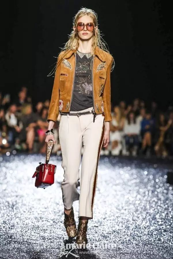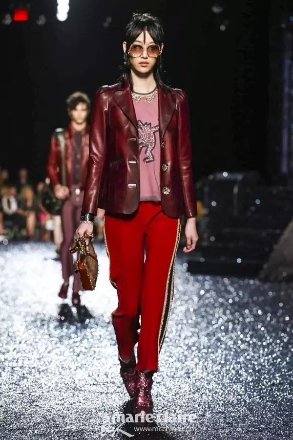 COACH 2018春夏系列是向纽约城市精神致敬的一个献礼,怀旧反叛的青春气息,浪漫情怀的印花吊带裙等单品比以往更具时装感,细节处理上有一些暗黑,摇滚,和粗粝感的中性细节元素,完美诠释了一个追梦女性的外在形象。而Lou Reed地下丝绒乐队主唱给这一季男装带来很多音乐灵感,棒球外套和机车夹克上体现了纽约著名艺术家Keith Haring的经典涂鸦印花,传递出一个富有玩趣的追梦少年的形象。