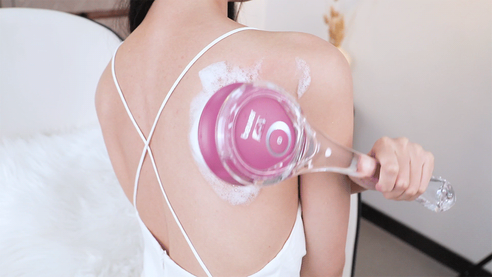 还有一个去角质的粗质刷头,可以更进一步洗去多余角质,改善背部长痘的状态。