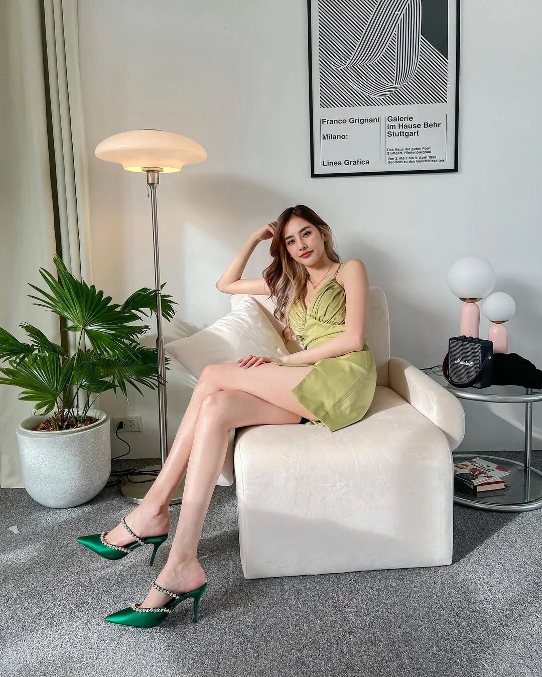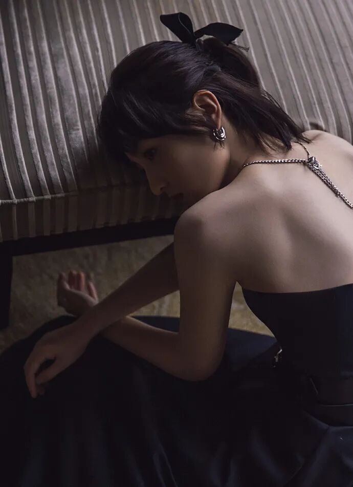 但她穿吊带时露出来的背部肌肤平滑、干净,衬得人落落大方,很难不夸一句“氛围美人”吧!