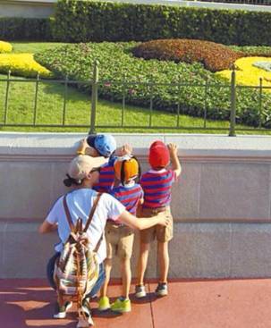 今年4月,鲜少分享儿子照片的梁洛施,在微博上主动晒出与三个儿子的合照,母子四人在迪士尼公园游玩,三个儿子都穿着红蓝条纹T恤,分享照片或许是为大儿子庆生。
