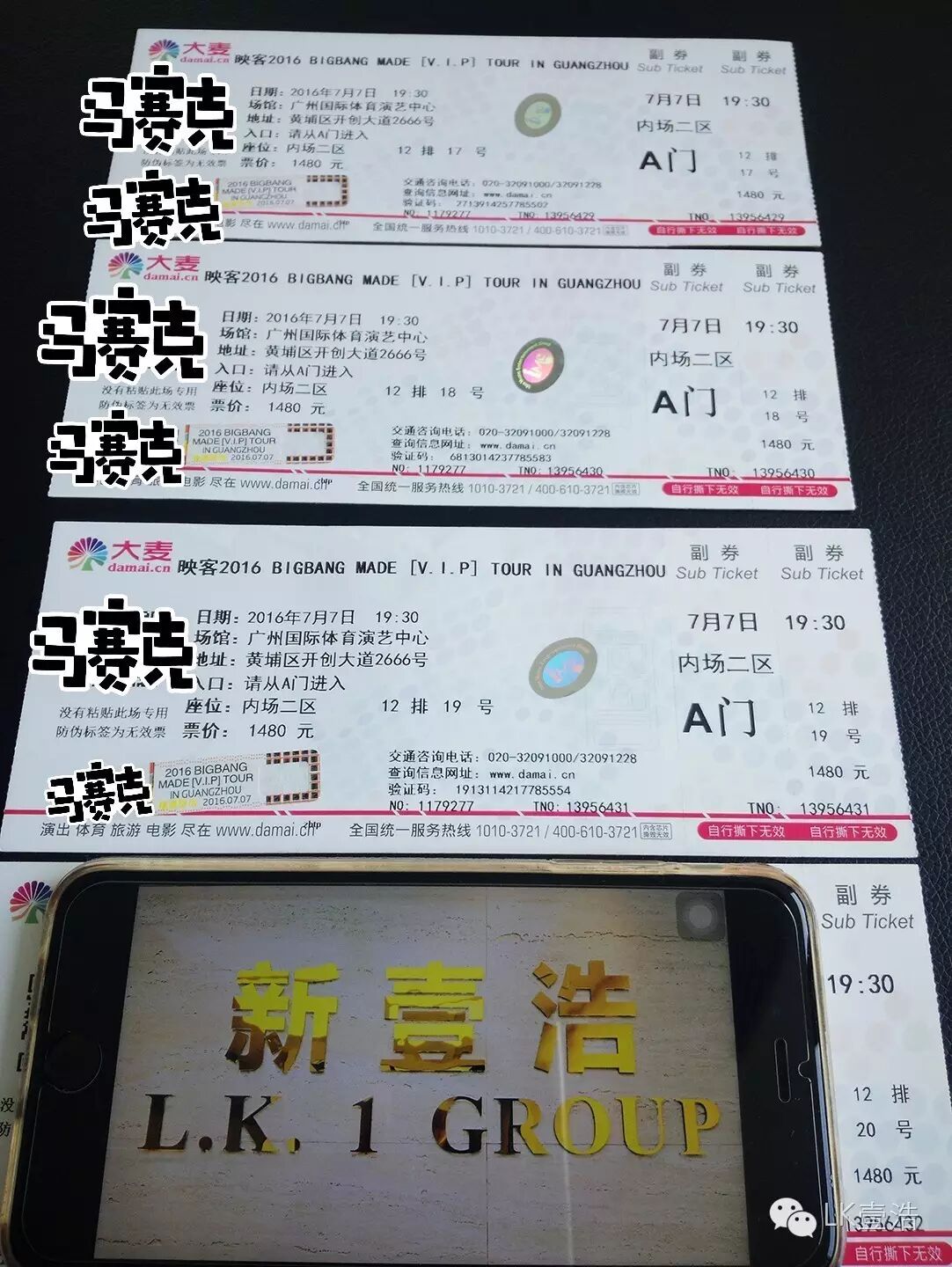 另外经过公司开会商量,在7月6日即今天下午5点开始抽奖,随后将会在订阅号“LK壹浩”内公布得奖者。幸运的朋友将免费获得广州bigbang演唱会的内场门票,到时候请到 新壹浩公司(L.K.1 GROUP)领取。