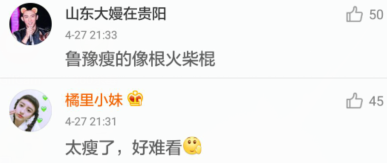 依旧是和爽妹相似的标题风格:纸片人、竹竿腿……但如果形容郑爽还稍显夸张的话,放在陈鲁豫身上只能说是相当贴切了。