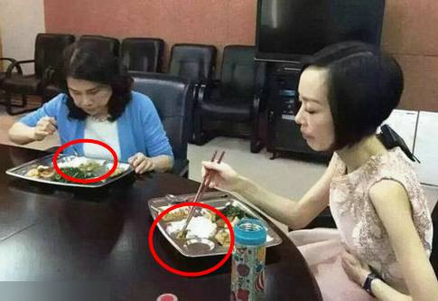 鲁豫吃饭的时候是这种吃土一样嫌弃的表情。(看到网友在说一个一个细节:董明珠的米饭朝着自己,而鲁豫却是更靠近蔬菜的位置,可以想象她是多么抗拒主食……)