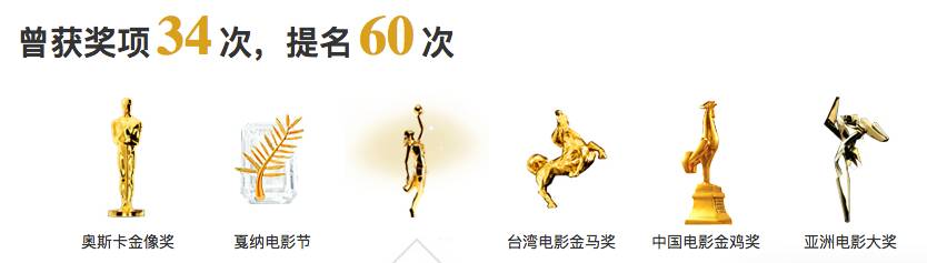 其中,奥斯卡金像奖提名1次,戛纳电影节获奖1次,香港电影金像奖提名31次、获奖17次,台湾电影金像奖提名25次、获奖11次……