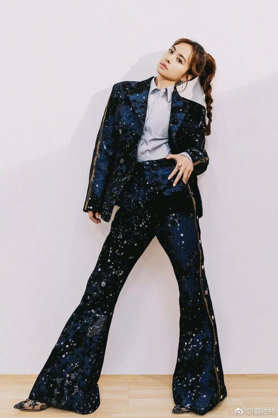 ▲也不会因为自己的身高问题放弃各种略带夸张的长裤,只是小个子女生在尝试这类单品的时候,一定要记得像蔡依林这样,靠高跟鞋来帮忙,不然太过宽松的裤脚可能会在视觉上更吃身高。