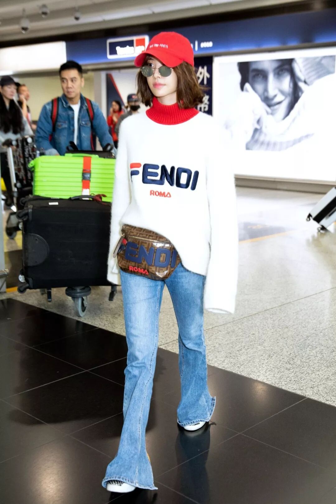 ▲虽然说Jolin丢弃了各种冗杂繁复的设计,这也并不代表她就忠于无聊的基本款。在白色针织毛衣搭配牛仔喇叭裤的常规搭配中,她会用一个腰包来提升造型的完成度。当然,只要你和蔡依林一样有着衣出惊人的决心,全身Logo的造型也不是不能尝试。