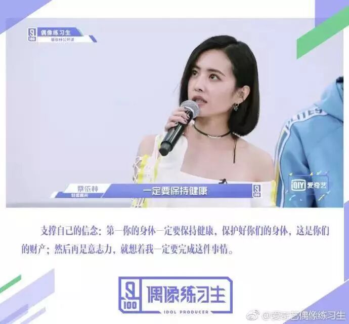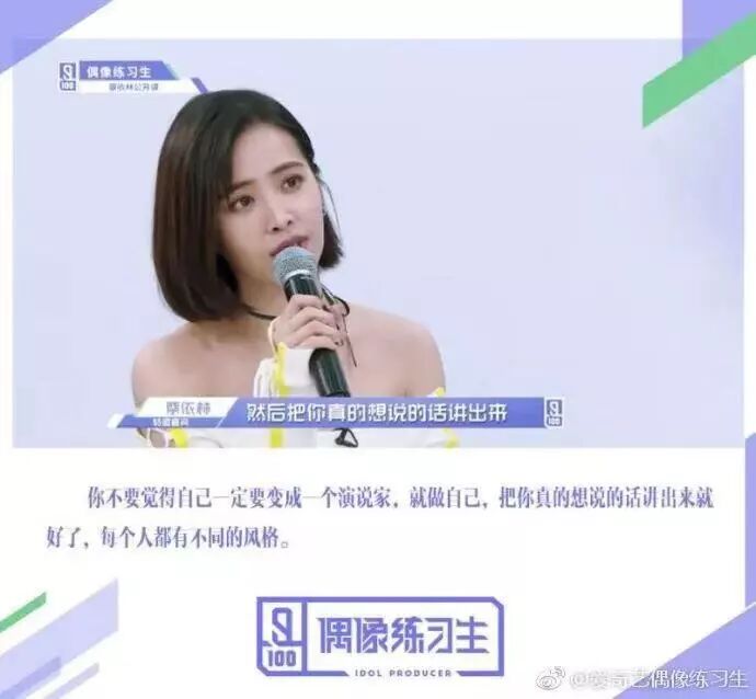 ▲除了自己努力,之前还作为前辈,给《偶像练习生》的选手们解答了各方面的疑问,金句频出。