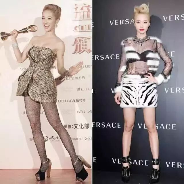 ▲其实在时髦这条路上,蔡依林也走过不少弯路,超高防水台的高跟鞋让人感受到了她想让腿看起来更加修长的决心,而动物纹加上透视的拼接只让人觉得用力过猛,再顶上这个发型实在是有些一言难尽。