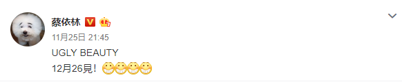 ▲蔡依林最近同时更新了ins和微博,亲自宣布自己的新专辑名字叫做UGLY BEAUTY,并将于12月26日跟大家见面,从名字来看,ugly和beauty互相矛盾,可能又是一张探讨社会现象的专辑。