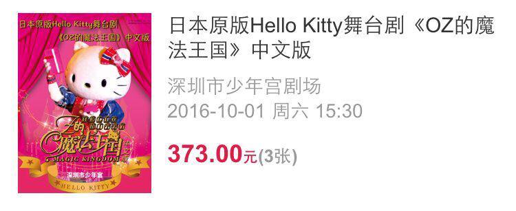 深圳hello kitty舞台剧亲子门票*3(一人3张,适合一家三口)