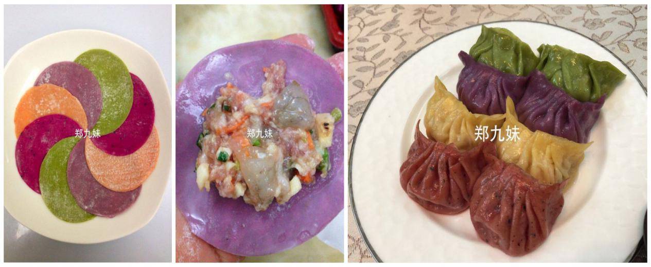饺子类:蔬菜水果菜饺,蔬菜水果三鲜虾饺,采用红火龙果,红萝卜,菠菜,紫薯,马蹄,鲜虾,干贝,白菜等制作,无任何添加,安全健康。