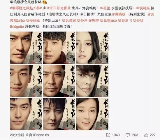 作为2015年现象级热播剧,全国观众都在期待着《琅琊榜》第二部的演员阵容。昨晚十点多,《琅琊榜》导演侯鸿亮悄悄发了一条微博。