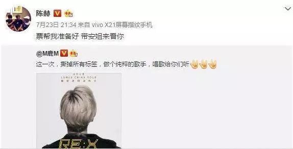 微博发出不久,好兄弟陈赫就在第一时间转发了,并称要带孩子去一起去看演唱会。而粉丝们更是激动不已,一个个的都在评论里欢呼宝贝终于要出新歌了,也难怪粉丝们那么激动,鹿晗这些时间又是录综艺又是电视剧,哪有时间录歌,这次的歌曲粉丝们都等了很久了!