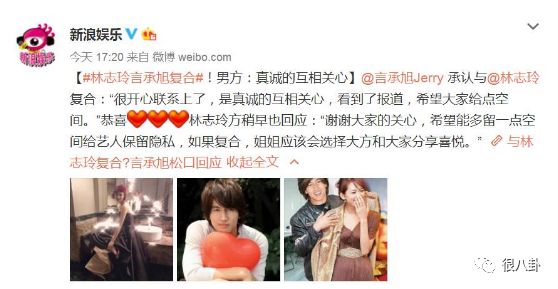 果不其然,消息刚出来不久后,两人约会的事就上了微博热搜,就在大家讨论的热火朝天时,言承旭也很大方的承认,自己和林志玲复合了,言承旭:很开心联系上了,是真诚的互相关心,看到了报道,希望大家给点空间。